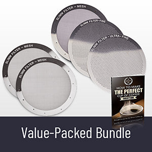Our filter sets include a two mesh permanent filters for the AeroPress which allows you to minimize waste, and achieve impeccable coffee.